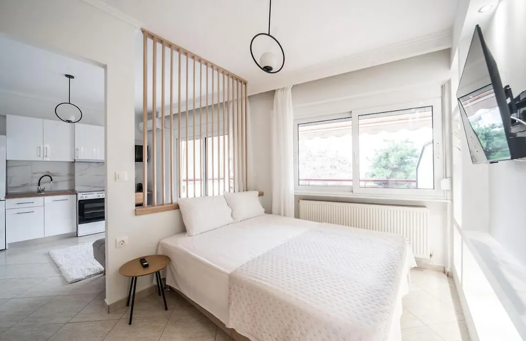 Ved at opholde sig i Studio Diogenous ferielejlighed, kan gæsterne slappe af på en terrasse eller nyde en 25 minutters gåtur til Skt. Nicholas Orphanos Kirke.